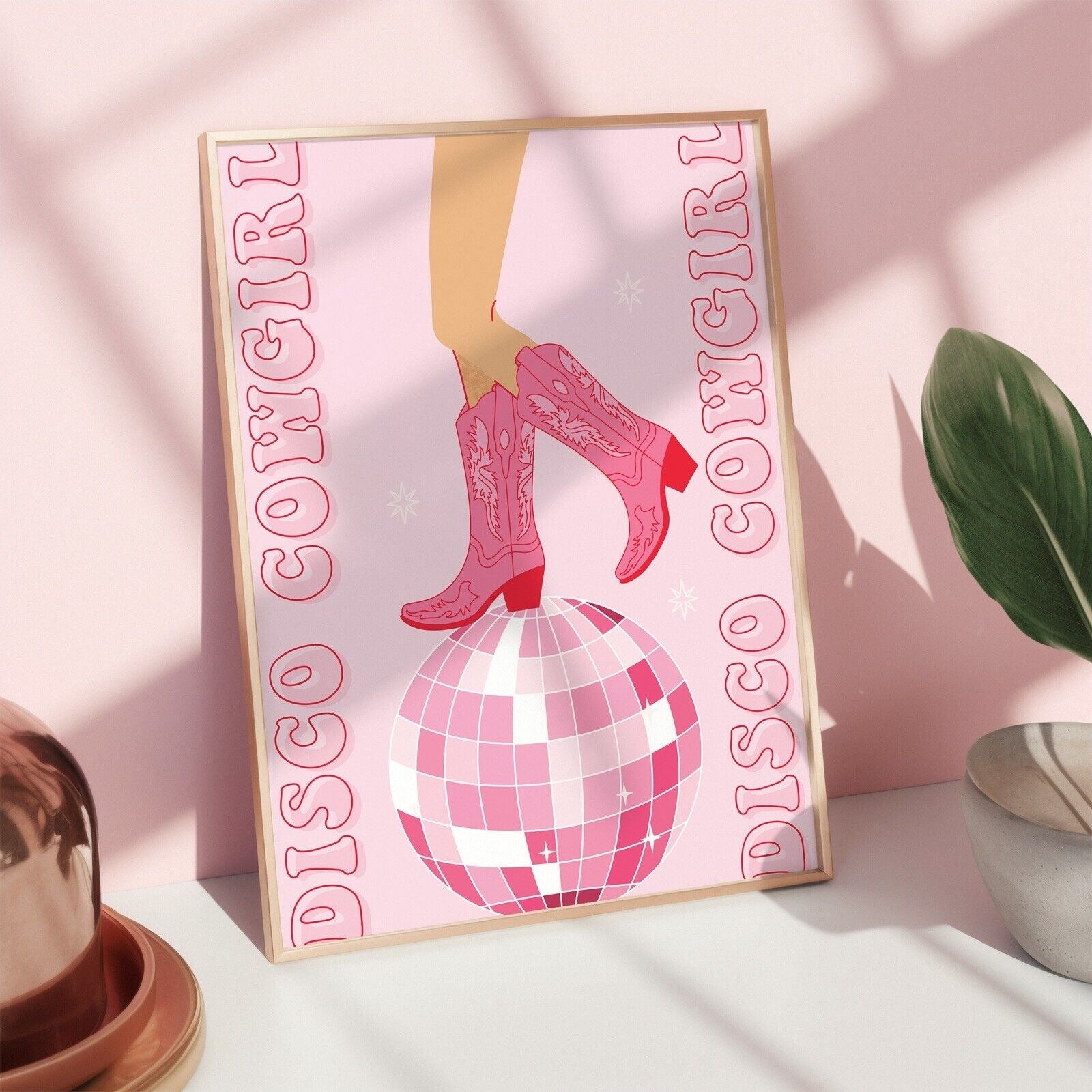 Disco Cowgirl Poster, Cowgirl boots art print Y2K Art Print, Disco Ball Poster