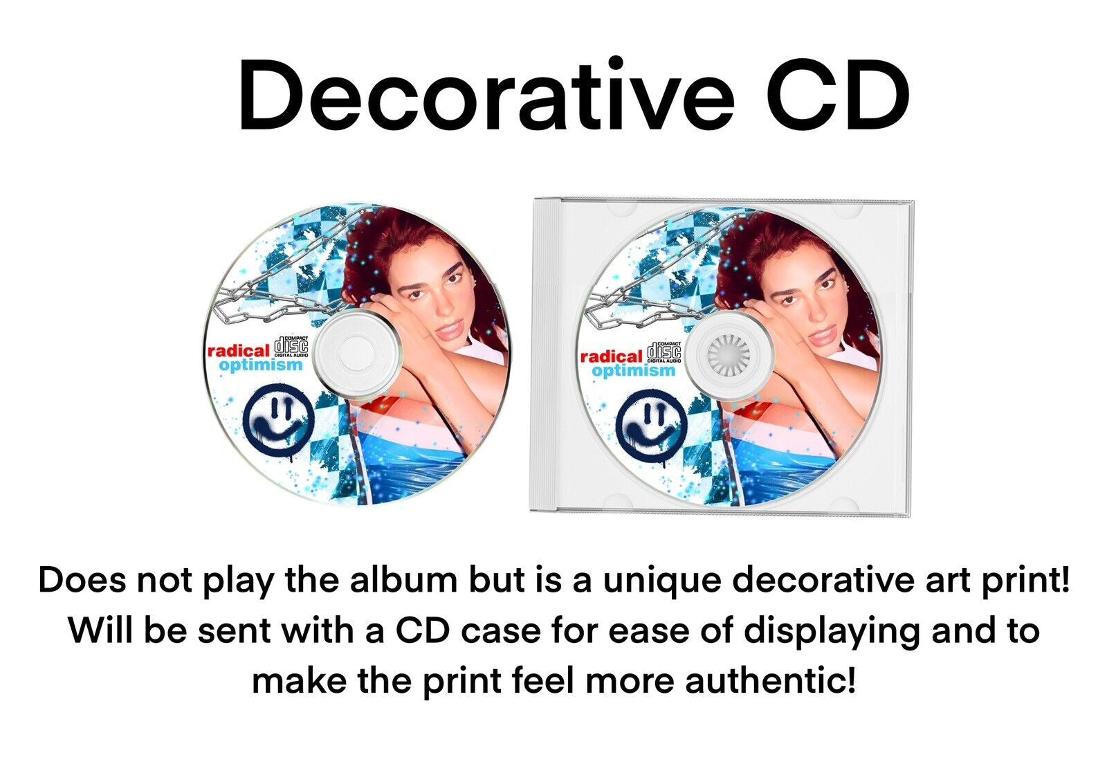 Decorated CD: CD printed with the design shown in the images - a new take on traditional art prints (which are printed on paper and framed).